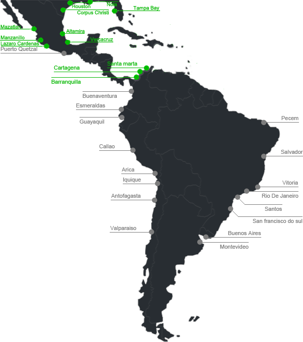 POGL tiene al menos dos viajes entre China y América Latina y el GOLFO de EE. UU. y África cada mes. Su alcance de servicio cubre el 90% de los puertos de descarga tanto en América Latina como en el GOLFO de EE. UU. y África.